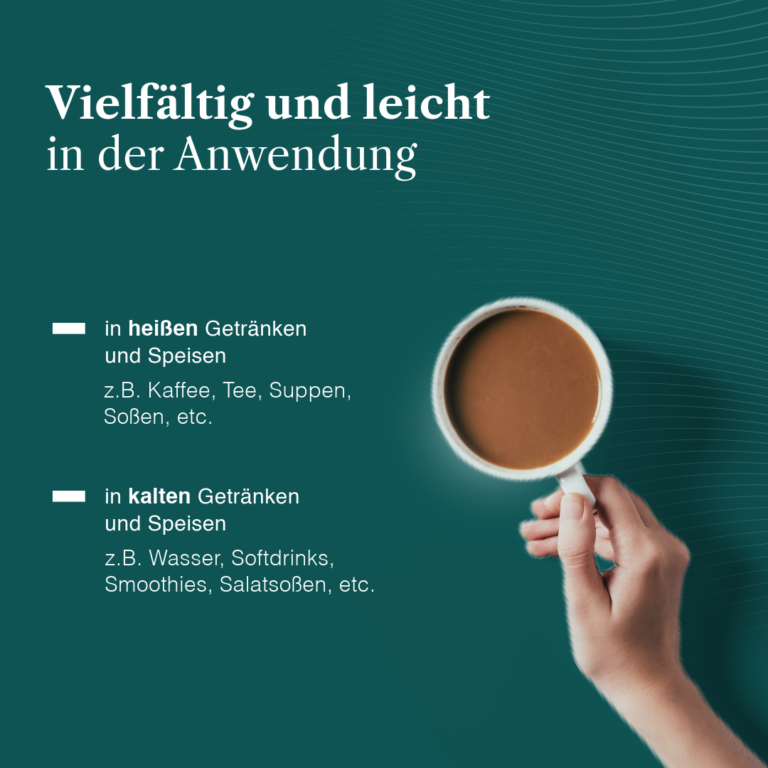+ Heiß oder kalt ein Genuss: Das Kollagenpulver ist hitzebeständig, sodass du es in jedes Getränk rühren kannst.